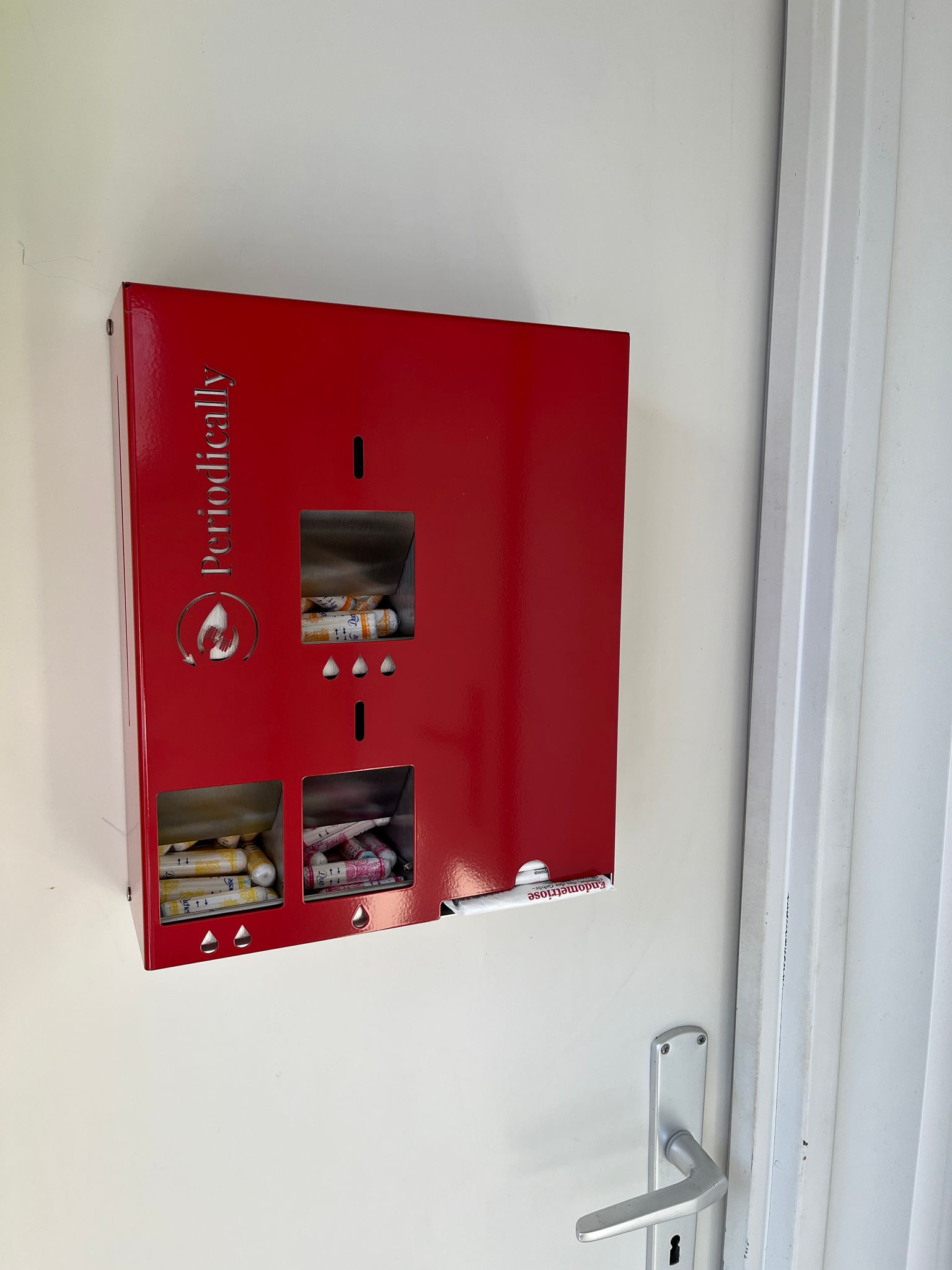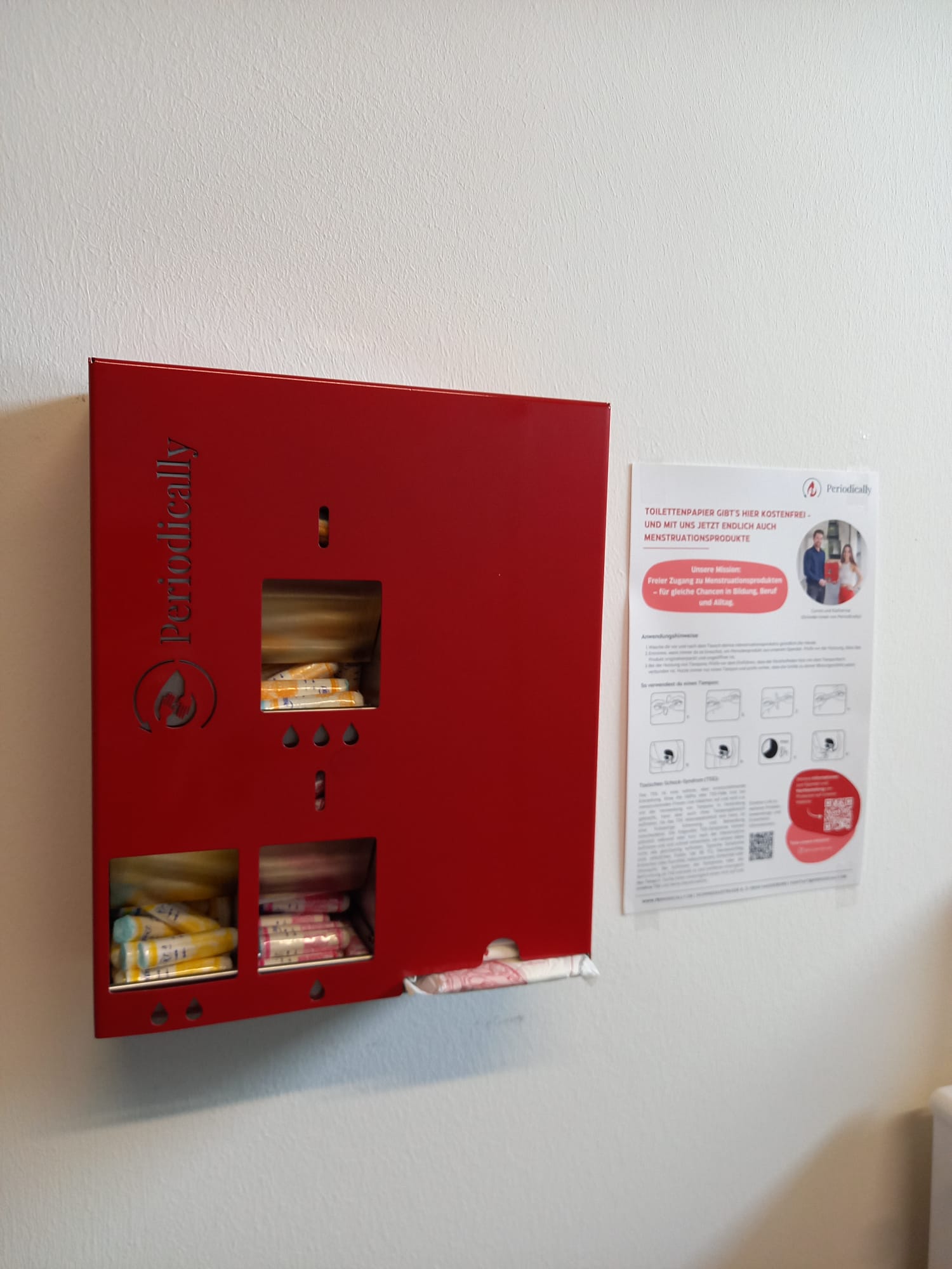 Bei uns gibt es schon länger kostenfreie Periodenprodukte, doch jetzt sind sie sicher aufbewahrt in den schicken Spendern von "Periodically".