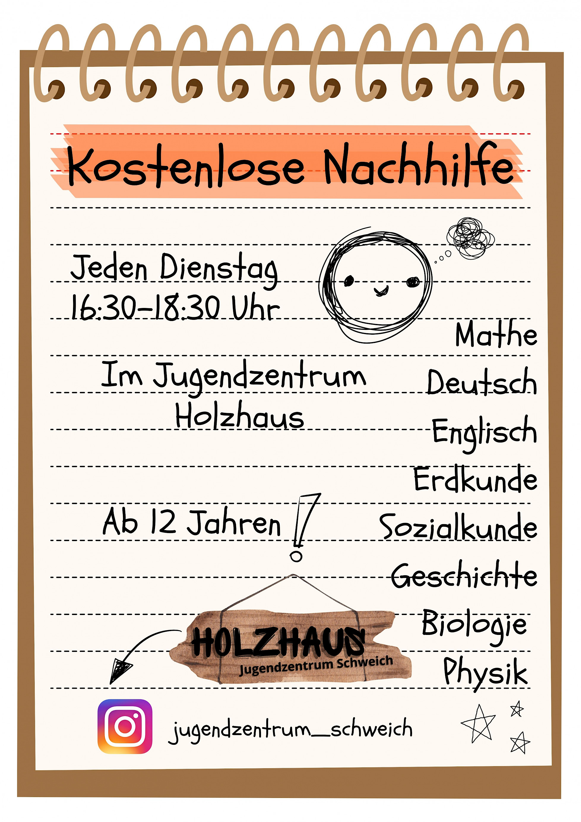 Jeden Dienstag bieten wir kostenlose Nachhilfe im Holzhaus an.